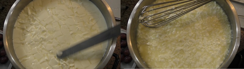 Kolejny etap to odbiór serwatki. Uczynić to trzeba dokładnie – tak, aby serwatka ziarna nie przykrywała. Tak pozostawić na 10 minut, w kąpieli wodnej, zarazem podnosząc jej temperaturę do 45⁰C.